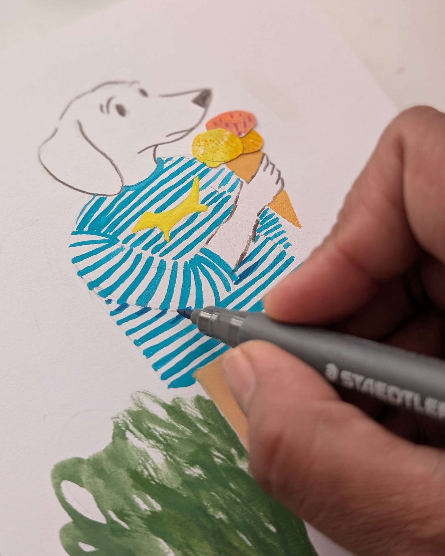 ... using traditional media – paint, pens, pencils – and also digitally on the iPad when needed.