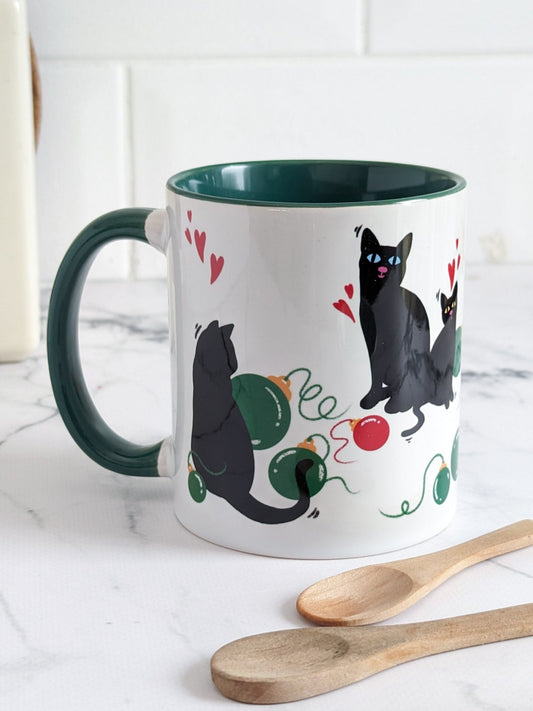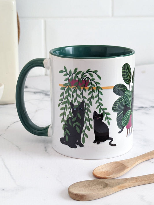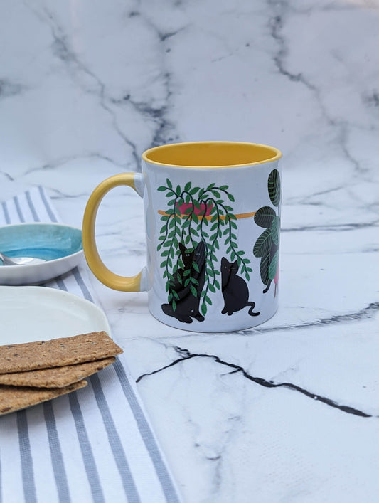 Plant Kitties (black cats, yellow accents) – ceramic mug