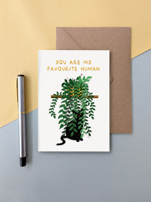 You Are My Favourite Human (black cat in pothos plant) – greeting card