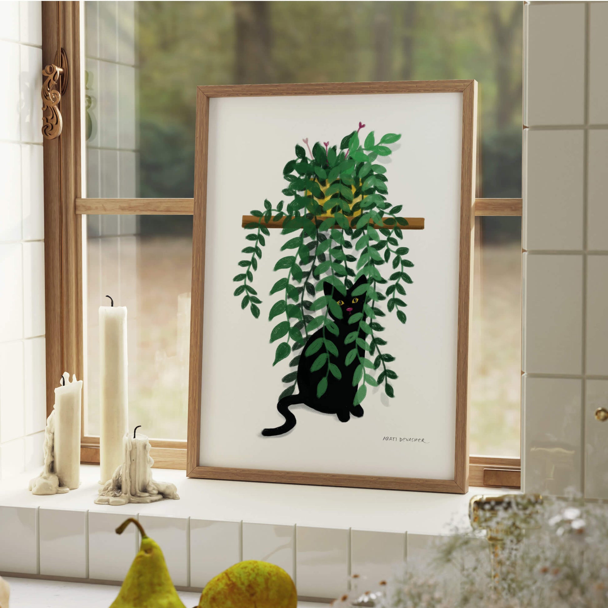 A pair of cute black cat in a house plant prints. Pair with a variety of other small or large prints to create a lovely gallery wall of delights.