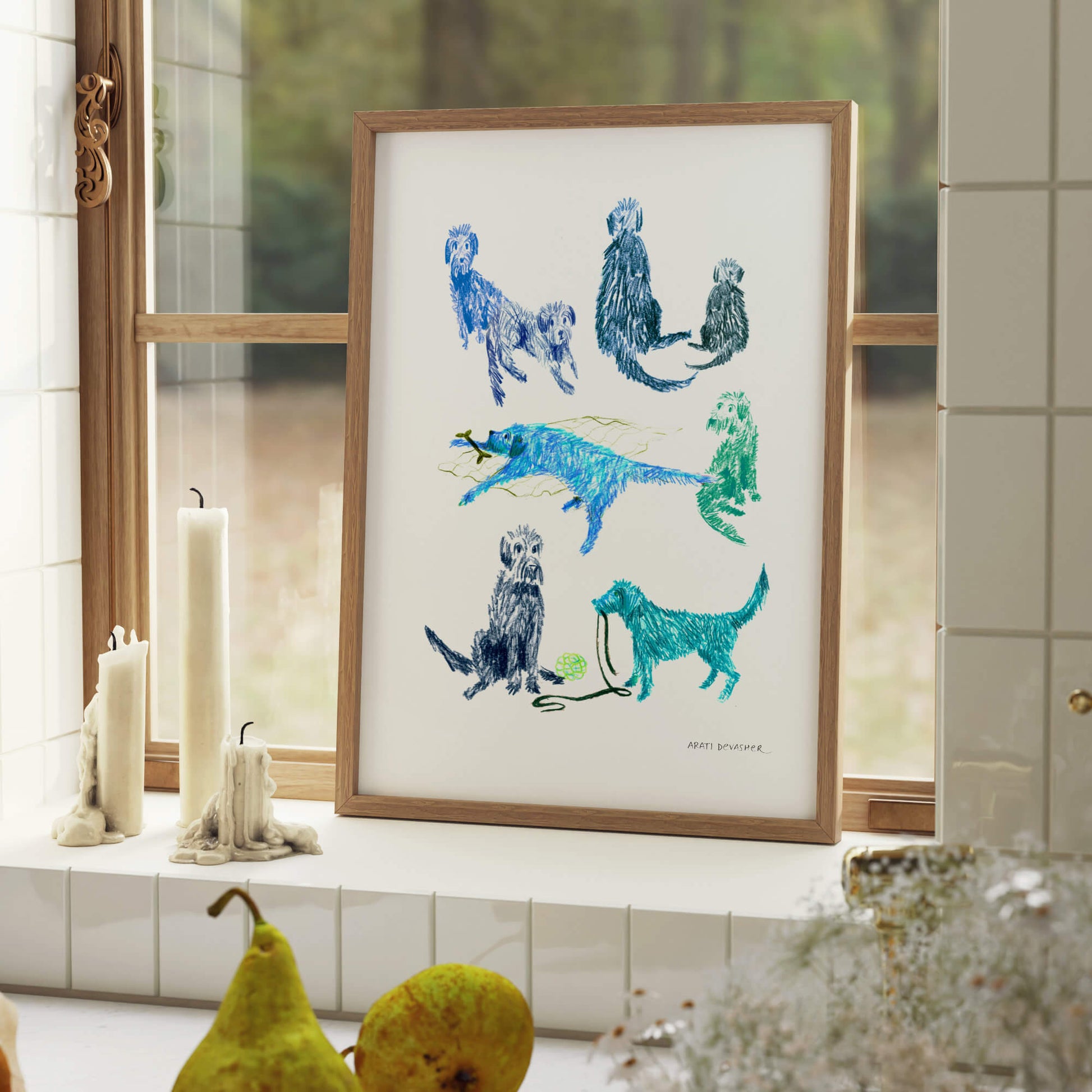 Love a scruffy dog? This print, created from sketches of my own scruffy pup is sure to be a hit with dog-lovers. Pair with a variety of other small or large prints to create a lovely gallery wall of delights.