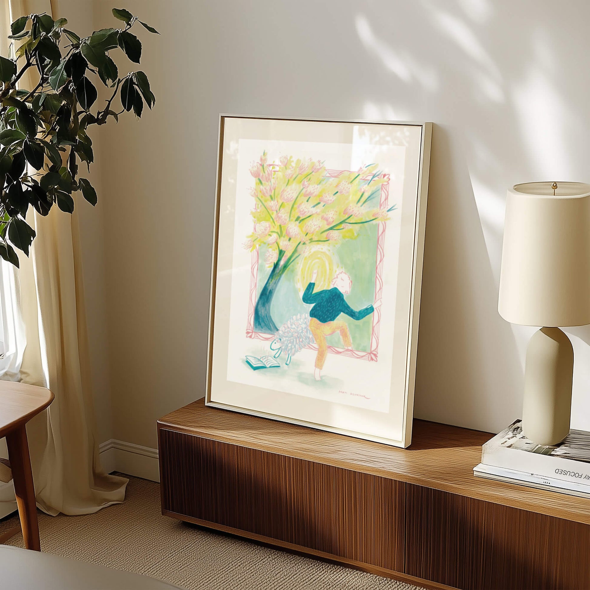 Keep art prints dry and out of direct sunlight. Frame paper artwork under glass for longevity. Wrap in acid-free paper for storage, free of damp.