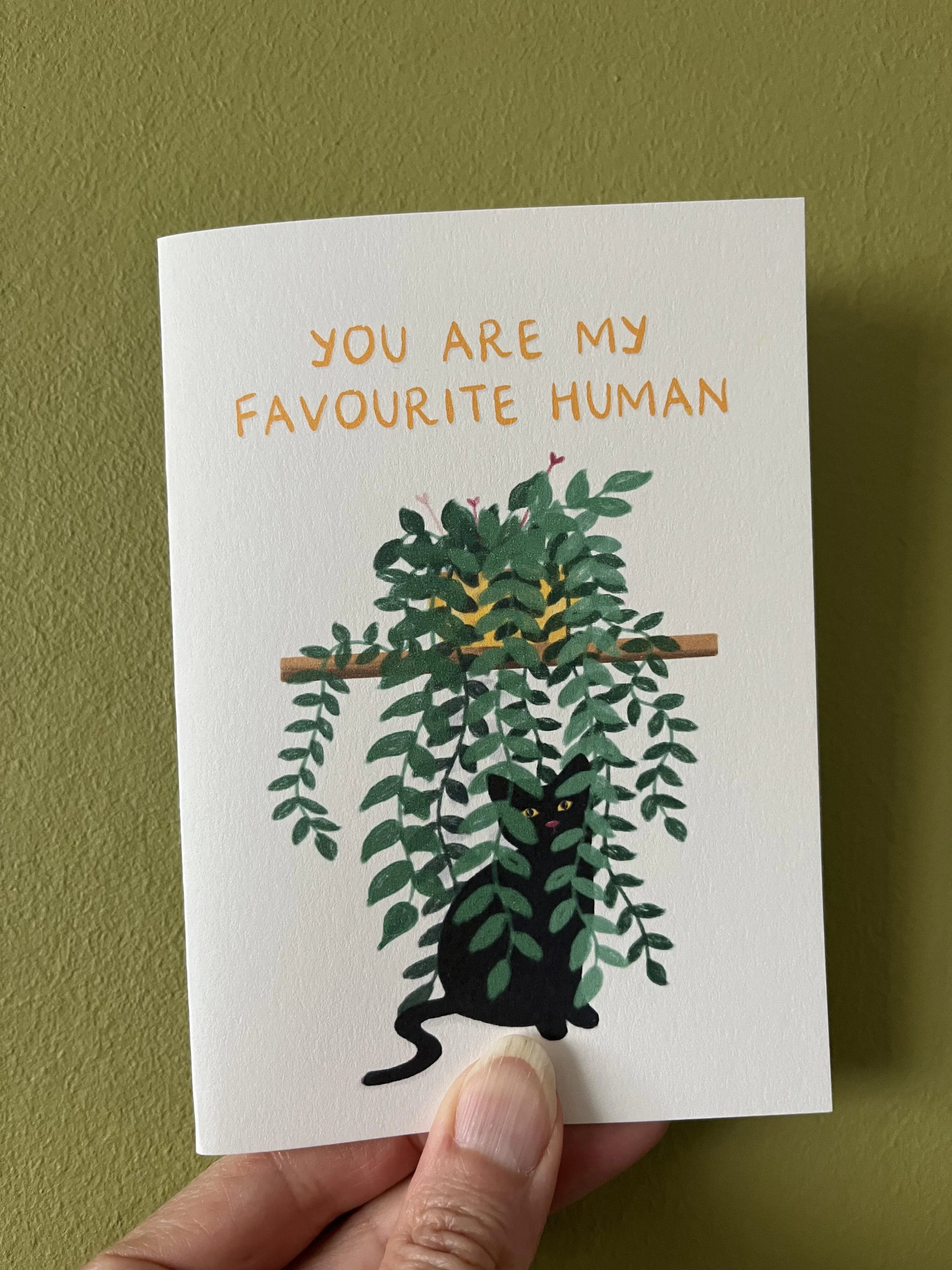 You Are My Favourite Human (black cat in pothos plant) – greeting card